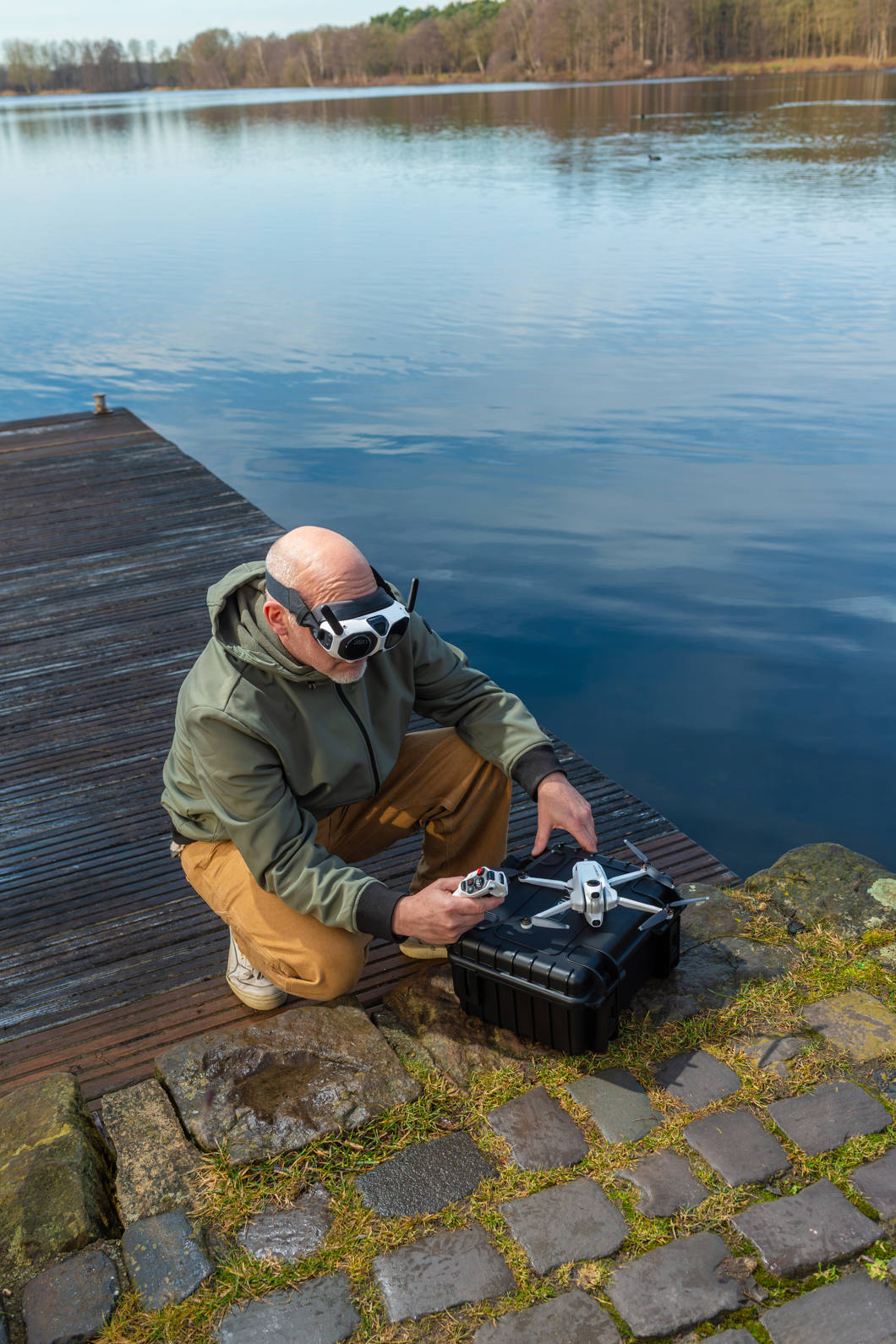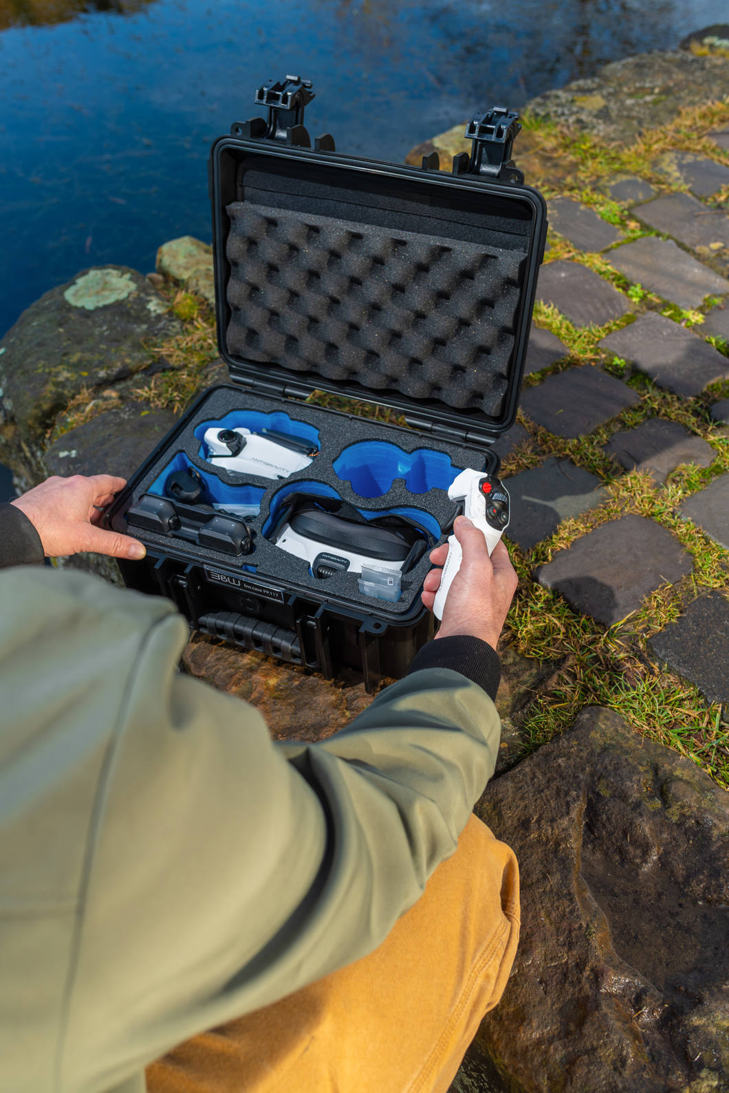 SMART STORAGE: Inside the precisely milled foam insert, everything stays secure: drone, controller, vision goggles and up to three batteries (including one inside the drone). The battery compartment offers flexible use: either for two drone batteries or – after removing the adapter – for a charging hub with two inserted batteries. Your setup stays protected and ready for action..