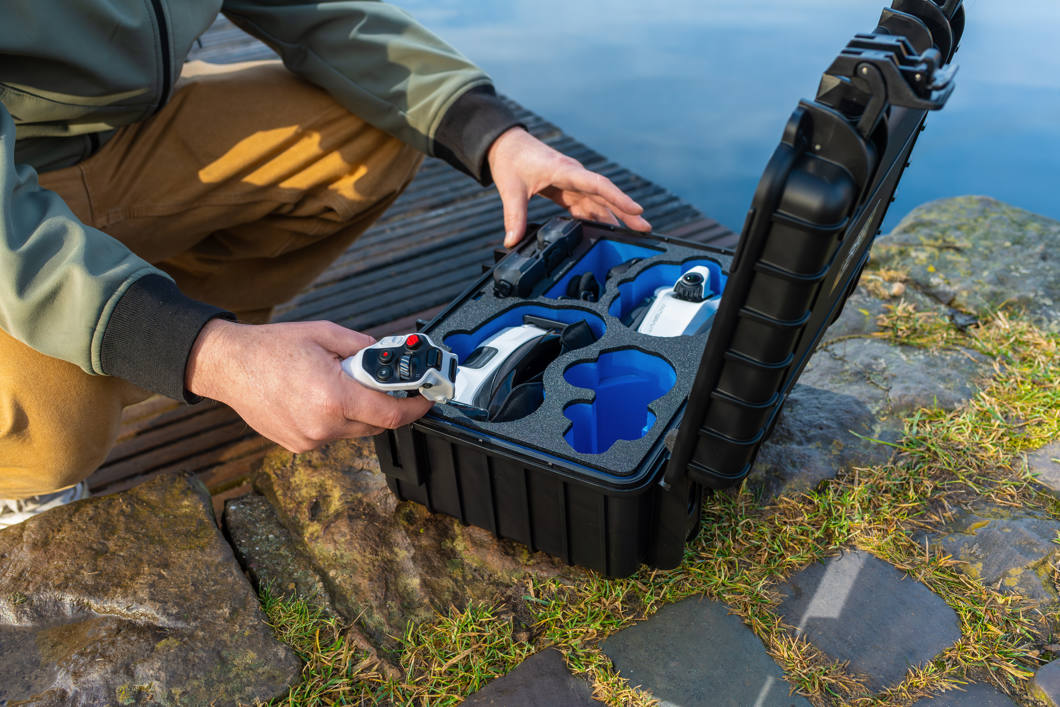 SMART STORAGE: Inside the precisely milled foam insert, everything stays secure: drone, controller, vision goggles and up to three batteries (including one inside the drone). The battery compartment offers flexible use: either for two drone batteries or – after removing the adapter – for a charging hub with two inserted batteries. Your setup stays protected and ready for action..