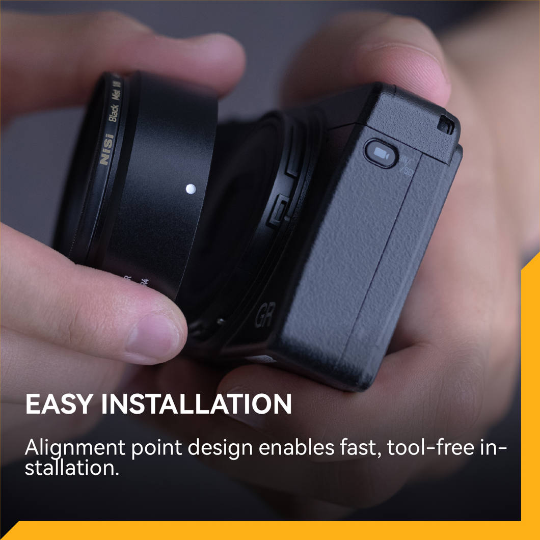 Protect Your Lens – Supports standard 49mm lens caps, keeping your front element safe even when filters are attached and the lens is retracted. Or use the NiSi Lens Cap for GRIV (Sold Separately).