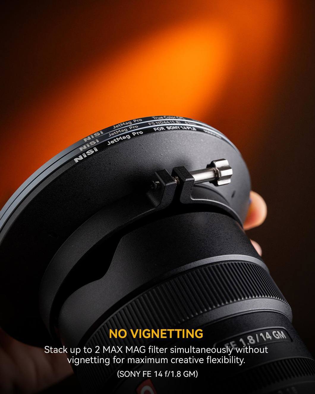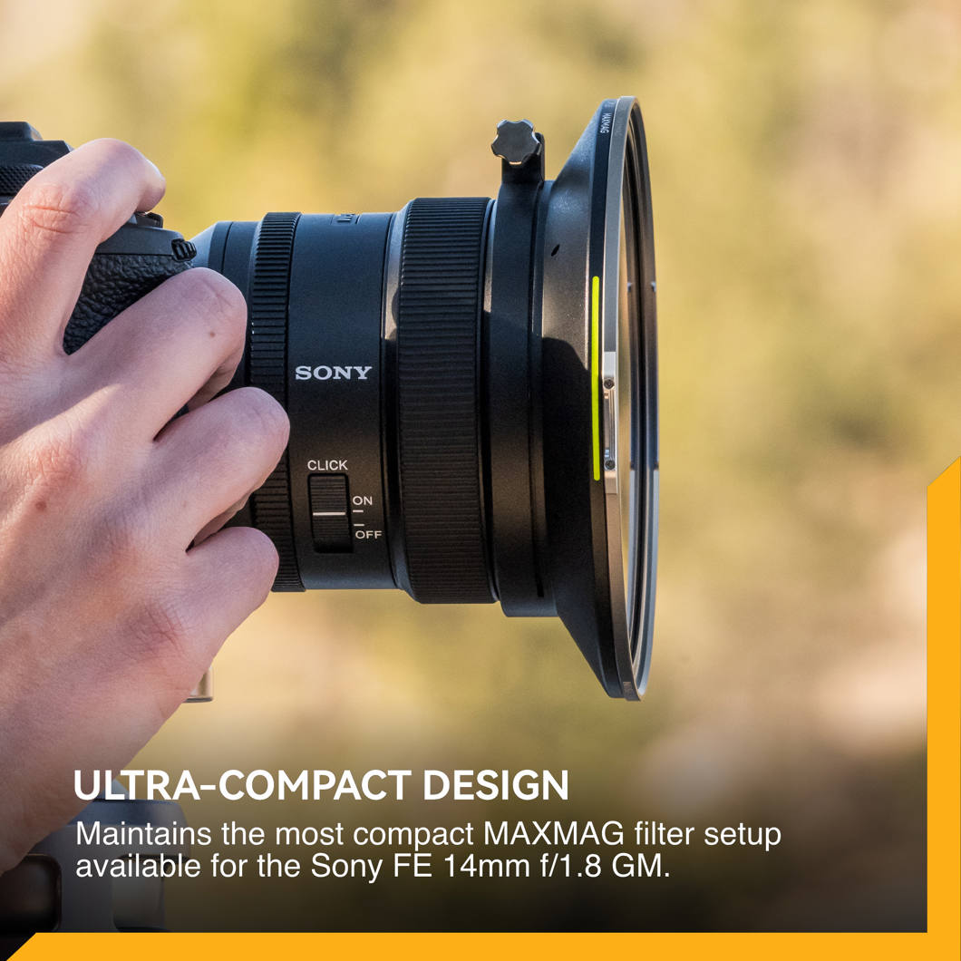 Stack up to 2 MAXMAG filters simultaneously without vignetting for maximum creative flexibility. (Sony 14mm F1.8 holder)