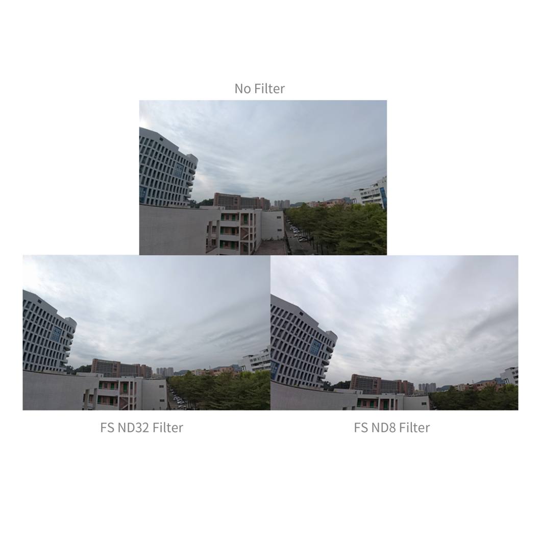 - FS FS ND8-suodatin kirkkaisiin päivänvalotilanteisiin tasapainoisen valotuksen saavuttamiseksi <libox-sizing: border-box">FS ND16-suodatin kohtalaiseen valaistukseen, joka auttaa säilyttämään kohokohtia ja varjoja koskevat yksityiskohdat